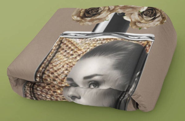 Audrey Hepburn in Perfume Bottle Blanket | Chic Fashion Throw Roses