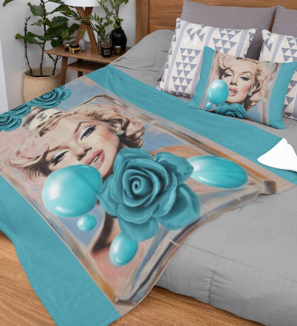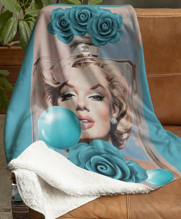 Marylin Monroe Blanket with Lavender Bubblegum & Roses | Perfume Bottle Throw